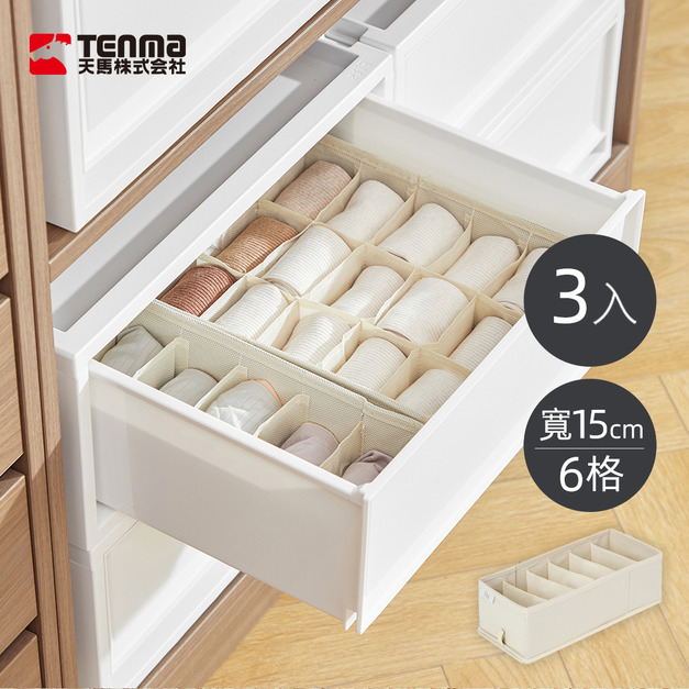 【日本天馬】Fits 布質分格收納盒(6格)-面寬15cm-3入 +