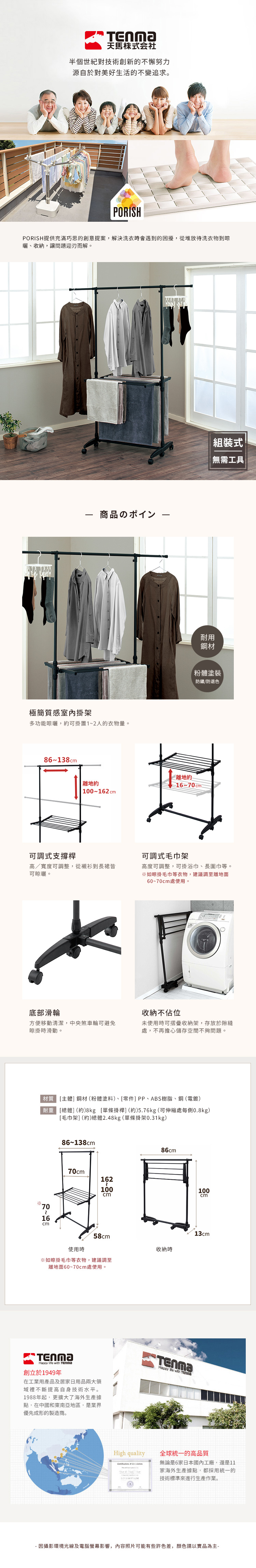 尺寸:[使用時]寬86~138×深58×高100~162cm、[摺疊時]寬86×深13×高100cm