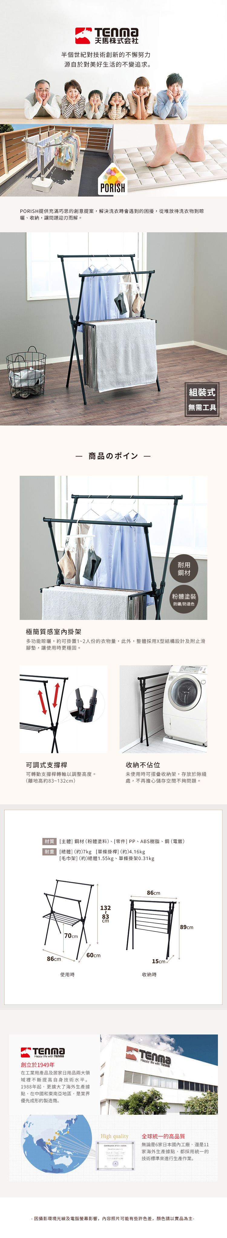 材質:[主體]鋼材(粉體塗料)、[零件]PP、ABS樹脂、鋼(電鍍)