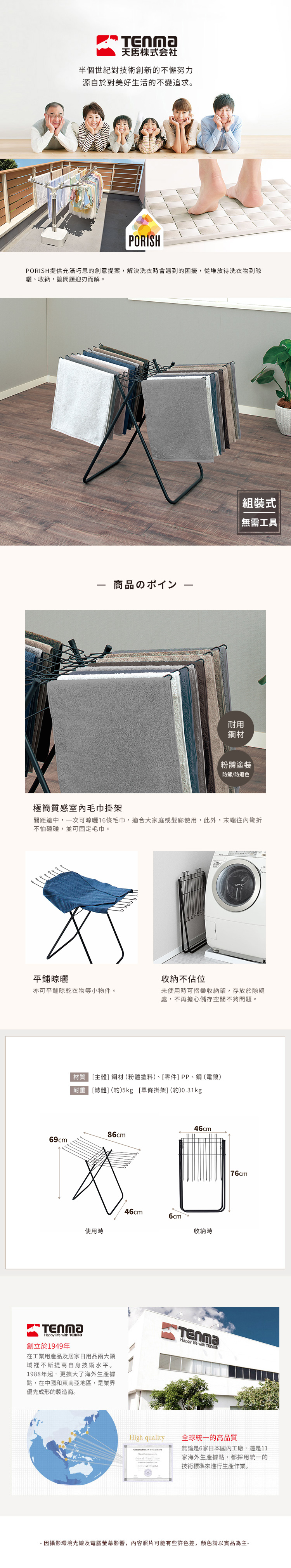 【日本天馬】PORISH 室內用多用途摺疊毛巾晾曬架-DIY