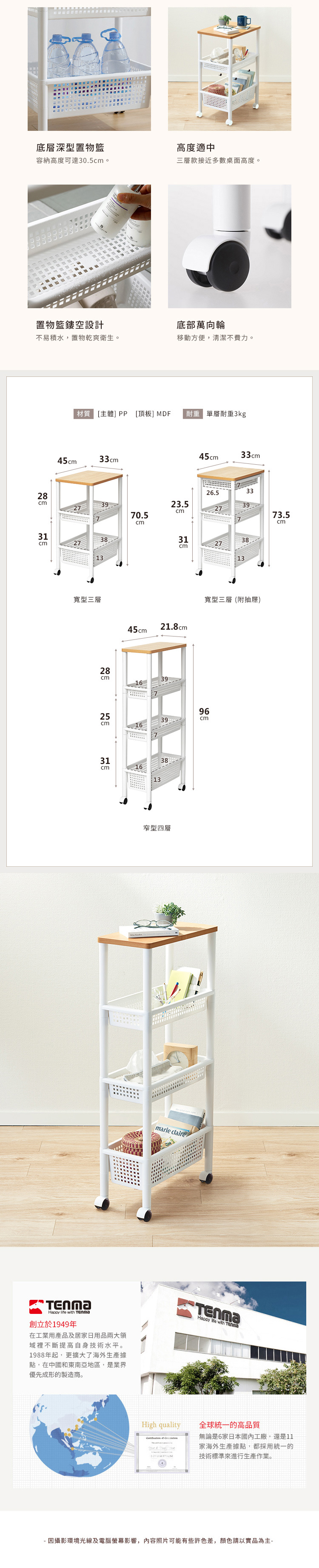 尺寸:寬45×深21.8×高96cm、[淺型置物籃內徑]寬39×深16×高7cm、[深型置物籃內徑]寬38×深16×高13cm