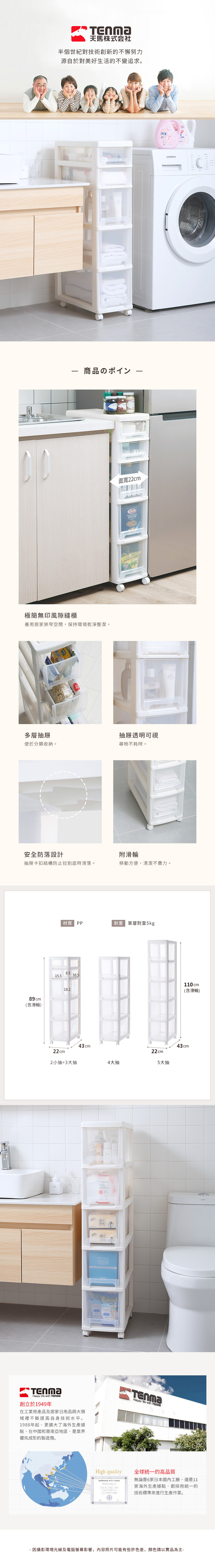尺寸:寬22×深43×高(含滑輪)89cm、[小抽屜內徑]寬15.5×深38.5×高8.5cm、[大抽屜內徑]寬15.5×深38.5×高18.2cm
