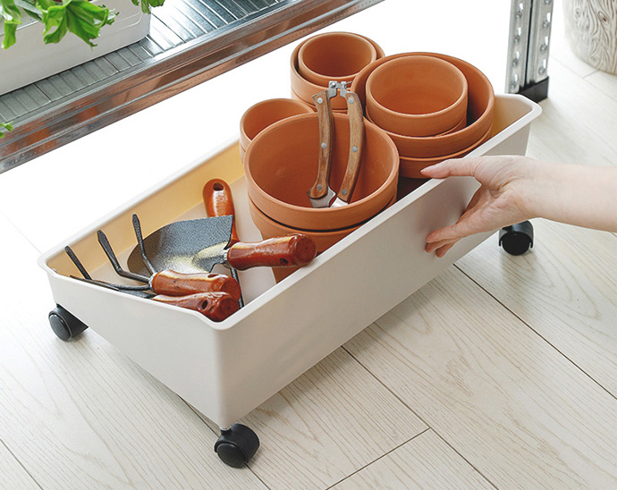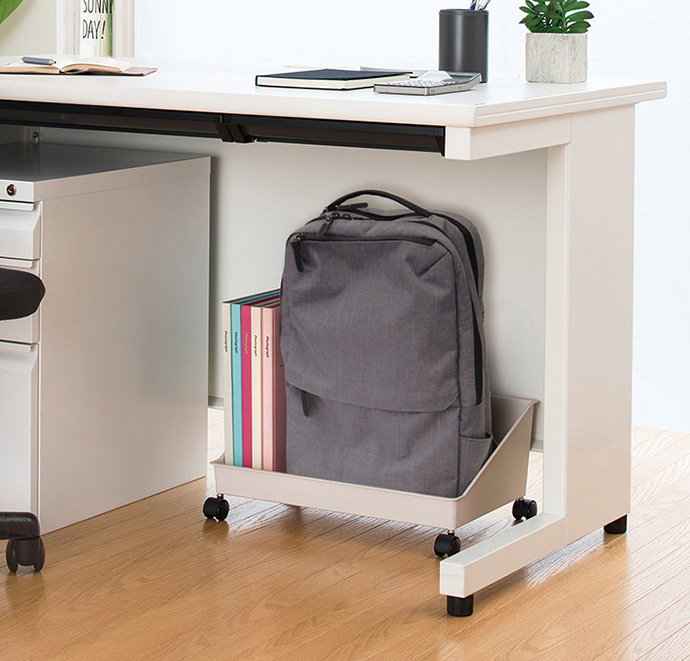 除了放置桌下收納公事包及雜物等,亦可收納其它居家用品,如園藝工具等...。