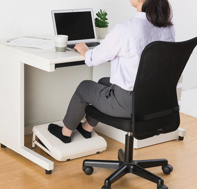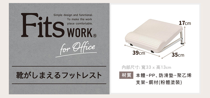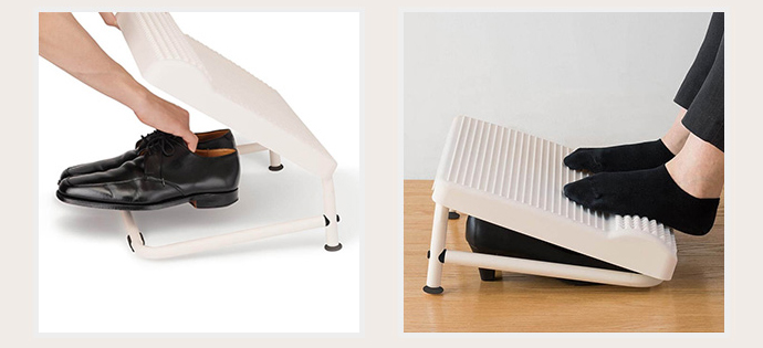 推薦給可在辦公室脫鞋的人使用! 可將脫下的鞋子放於腳墊下方,靈活運用垂直收納空間。
